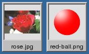 montage -label %f -frame 5 -background '#336699' -geometry +4+4 rose.jpg red-ball.png frame.jpg